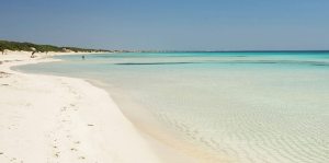 Marina di Pescoluse: la particolarità della spiaggia è quella di presentare una sabbia finissima e molto chiara, la più fine del Salento per questo nota come “Le Maldive del Salento”.