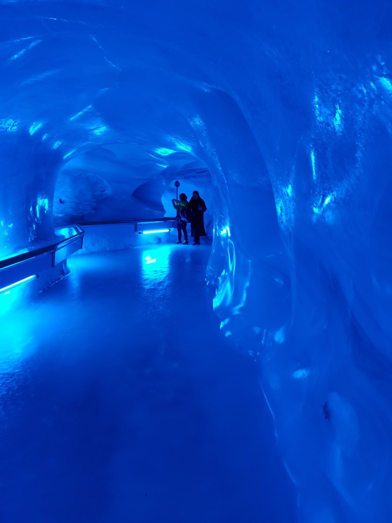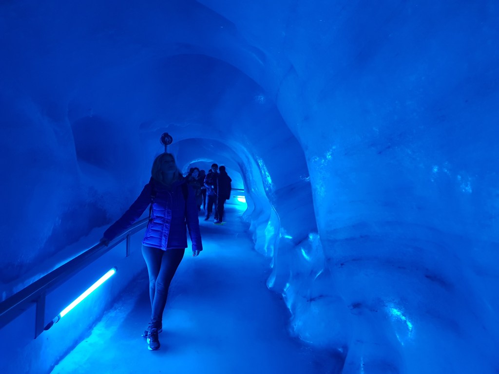 Il ponte non è l’unica attrazione qui a 3.041 mt, infatti, all’interno della stazione d’arrivo oltre a negozietti di souvenirs, bar, ristorante vi è la “Glacier Cave” una grotta artificiale lunga 150 mt porta proprio al cuore del ghiacciaio stesso. Qui la volta è ricoperta di stalattiti di ghiaccio e sopra le proprie teste si aprono i crepacci del ghiacciaio.