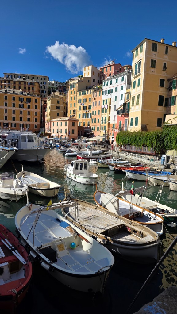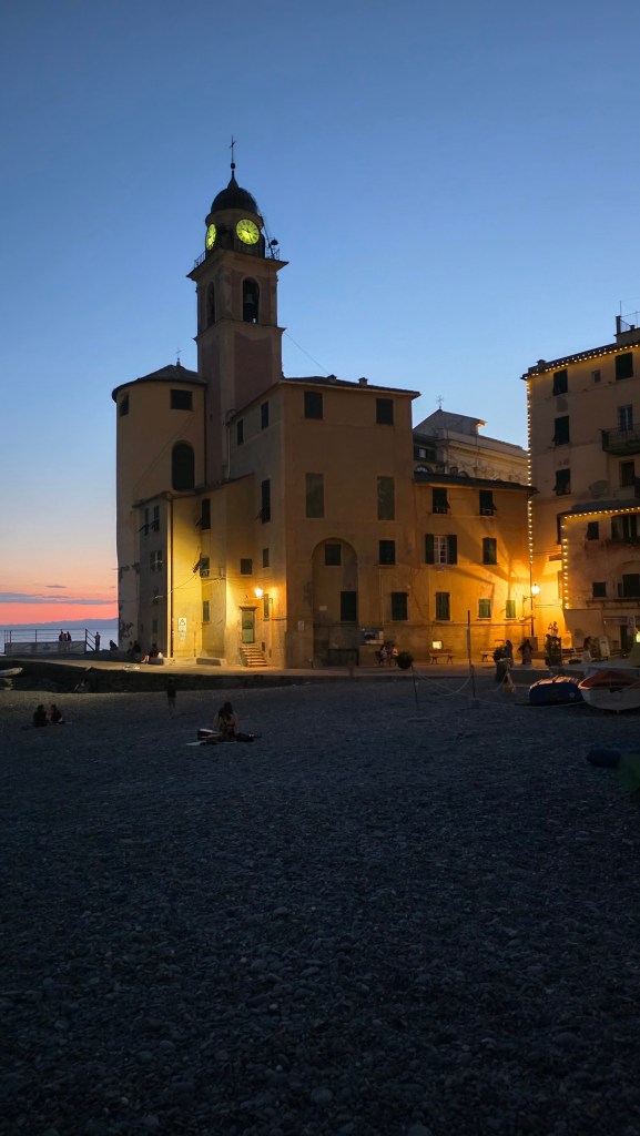 Camogli è un piccolo paese della Riviera Ligure affacciato sulle limpide acque del Golfo Paradiso, caratterizzato da una fila di case colorate che vanno dal giallo al rosso e arancione affacciate sul mare e al calar della luce, quando il sole tramonta, si rimane incantati ad ammirare il sole che si riflette sul mare, si illuminano regalando un’atmosfera magica, rilassante. Pochi minuti a piedi per percorrere tutto il lungomare e raggiungere il porticciolo, dove si affaccia la Basilica di Santa Maria Assunta, risalente al XII secolo.